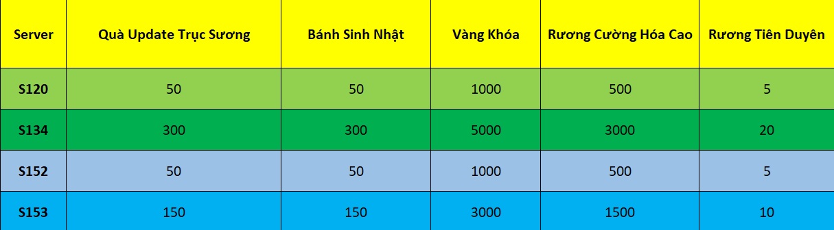 - Nhân vật bị trùng tên sau khi gộp sv sẽ nhận Gói bồi thường trùng tên qua thư.